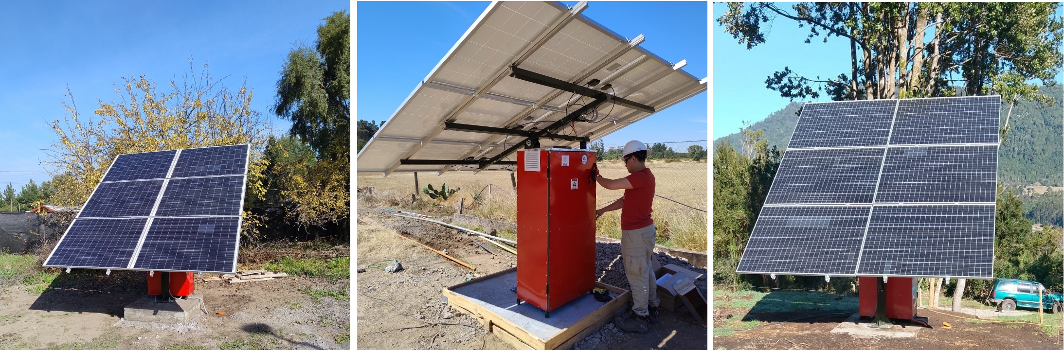 Estructura de acero con inclinación variable para Verano, Invierno y Otoño-Primavera, para optimizar la captura de energía. Los componentes electrónicos, tablero y baterías se instalan en un gabinete adosado a la misma estructura, minimizando pérdidas por transmisión de energía. A Continuación las características y precios de cada versión con instalación en zona Bio-Bio (sujeto a evaluación previa de accesibilidad). Se excluye la zapata de hormigón, pero se incluye el anclaje, el cual se suministra previamente.