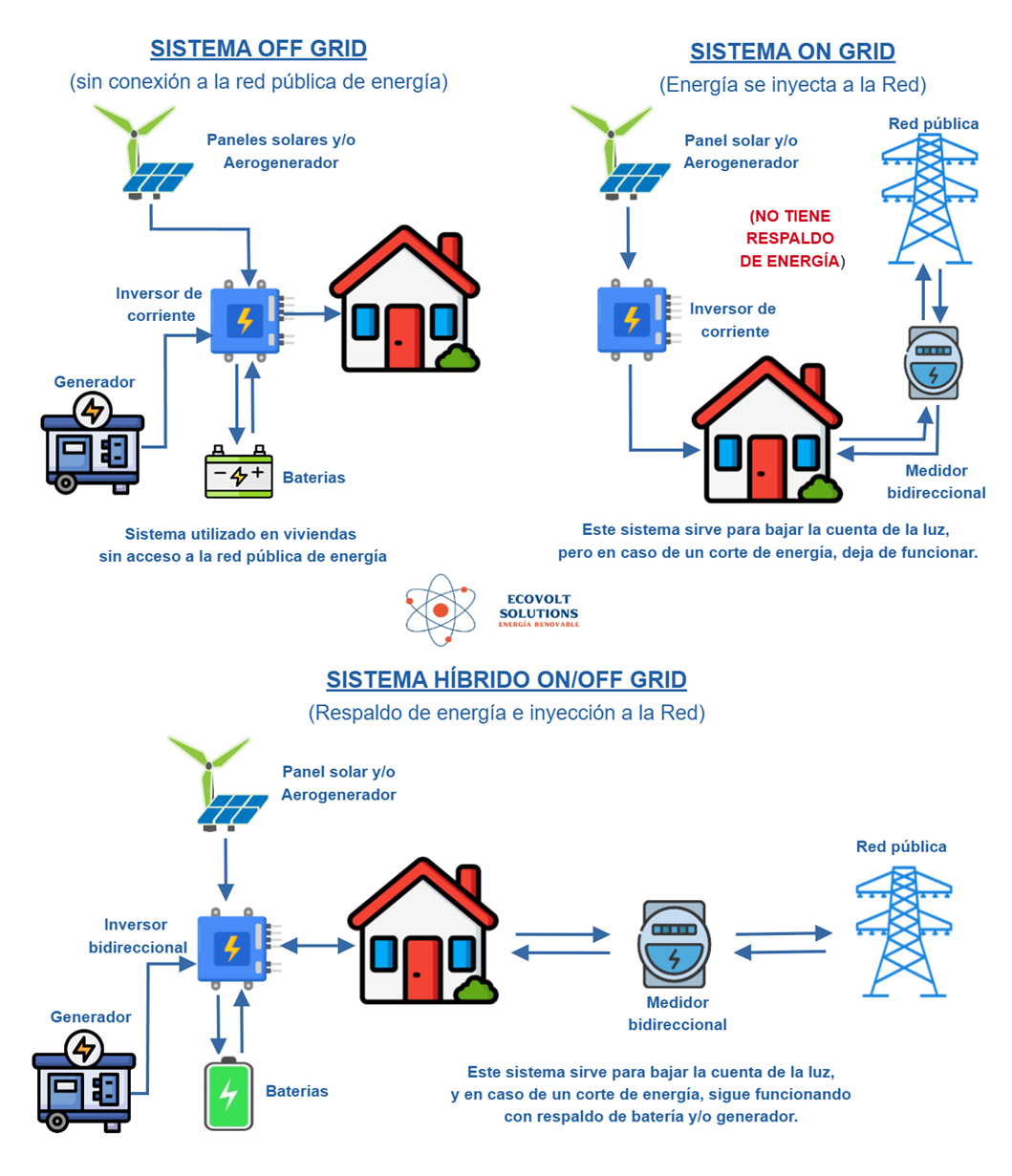 Sistemas de energía residenciales On-Grid, Off-Grid y On/Off